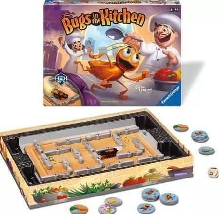 This item includes 1x HEXBUG nano, 1x 3D game board with 24x movable utensils, 18x cockroach tokens, 1x die, 2x doors, Instructions. Playing Time: 20 minutes.