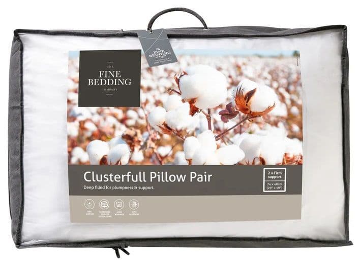 The Clusterfull pillow pair is perfect for those who love a fluffy, plump pillow. Filled with fine microfibre clusters and covered in pure cotton for added freshness, it offers firm support for a great night's sleep you'll love. N.B. Packaging may vary.