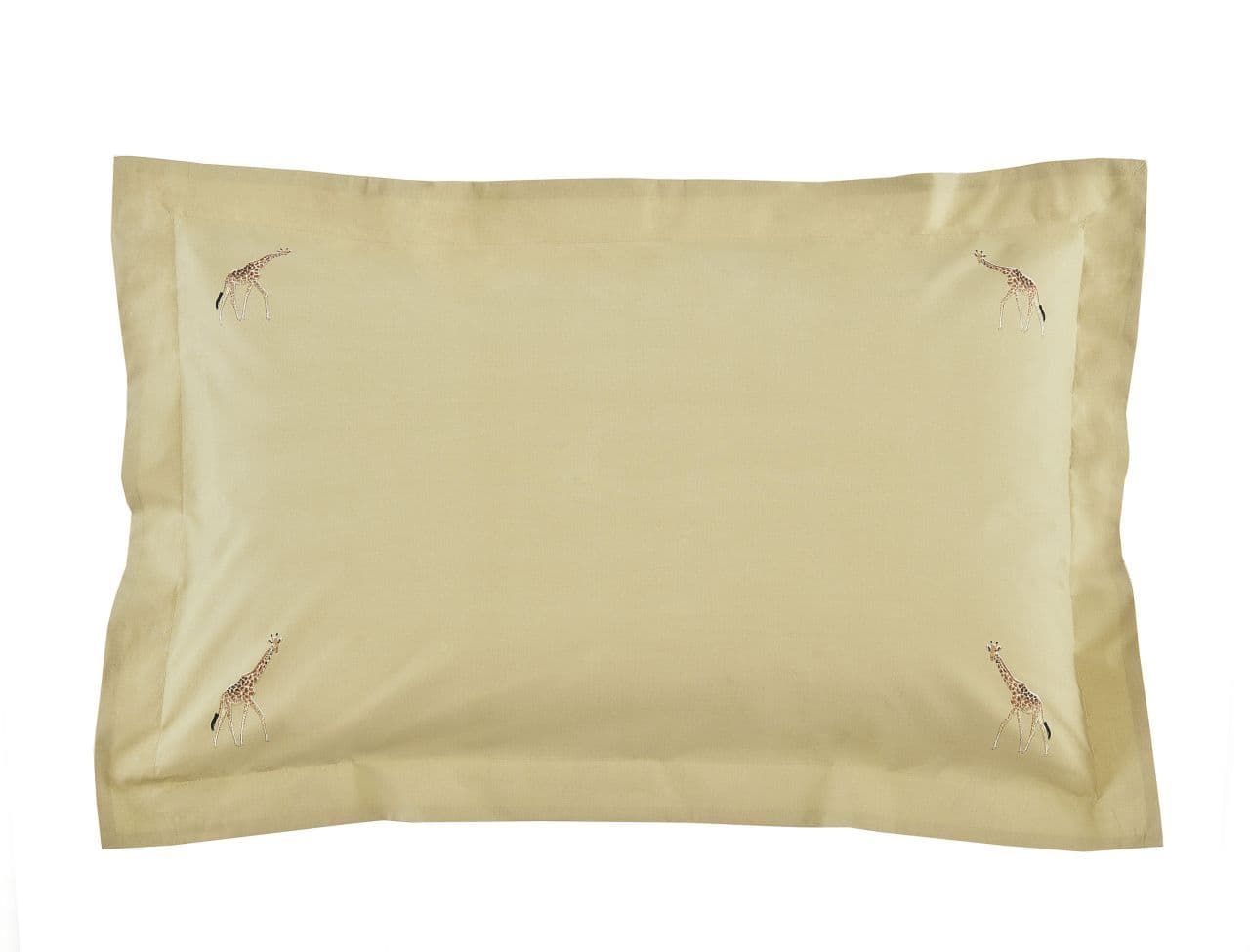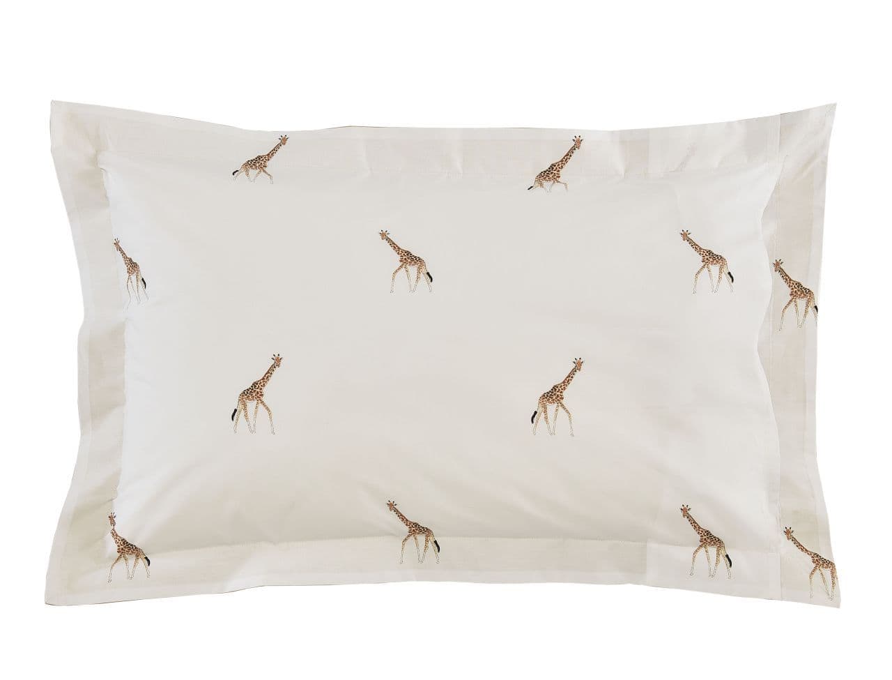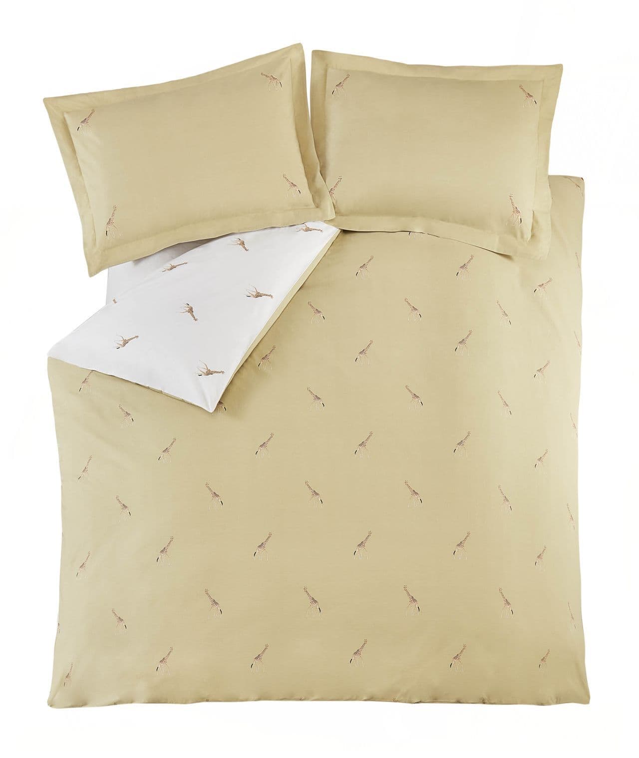 Sophie has perfectly captured the beauty of the magnificent giraffe within her striking bedding design. The fabulous coat of the giraffe stands out against the soft mustard ground presented on beautiful 200TC cotton quality. By buying this bedding, you will be supporting global conservation charity ZSL and helping them to create a world where wildlife thrives. The reverse features the same motifs on a fresh white ground, while the Oxford pillowcases have corner giraffe detailing.